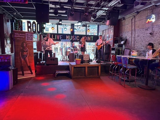 We stopped in to Tin Roof Broadway. The live music joint is on Broadway/US-70 between 3rd and 4th Avenues in the neighborhood known as The District in Nashville. The last time I was in Nashville, this two story brick building was Hatch Show Print (according to Google Maps). It looks like it was converted into a two story boor with the “Smallest Rooftop in Nashville” in 2014. There are other Tin Roof venues around the country including one in Detroit.