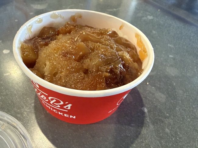 The final thing I got for J was the Peach Cobbler. This cobbler is one of the things Hattie B’s is really known for. It’s a mixture of tender sweet peaches and crispy dough pastry chunks. I don’t like peach cobbler so I didn’t even ask for a bite but I don’t think J would have given me one even if I did. She put down the mac and cheese to get to this. Pretty sure she had no problem finishing this one off.