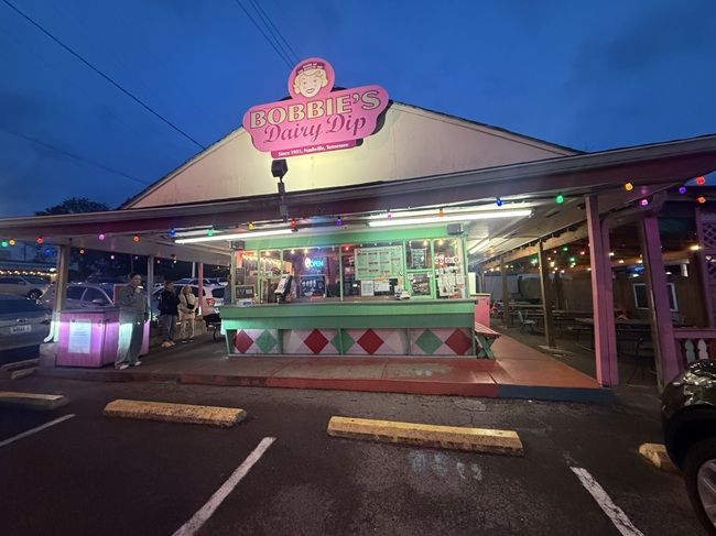 Bobbie’s Dairy Dip is a Nashville classic. It’s on Charlotte Avenue at 53rd Avenue right across the street from the Hattie B’s Hot Chicken I had eaten at earlier in the day. The walk up ice cream stand has been there since the early 1950’s. It was originally Harper’s Dairy Dip but it was changed to Bobbie’s in the 1980’s when a new owner, named Bobbie, bought the stand. Parking is a little though as there isn’t much for the actual restaurant. Hattie B’s lot is across the street and I did see some people parking over there but I was hesitant to do that. There was a little bit of street parking next to the Hattie B’s lot. I didn’t see any signs saying I couldn’t park there so I did.
