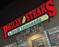 Philly Steaks and Fresh Lemonade is in a small strip mall on the corner of 25th Avenue and Burr Street in Gary. The plaza is just north of the interchange with I-94 and is nestled amongst the truck stops at the exit. The building is really close to the road but there is still just enough room for one row of parking right off 25th Avenue.